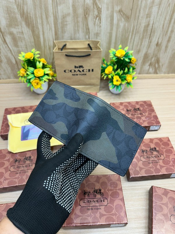 Coach Camo Print Leather Bifold Wallet – Forest Green