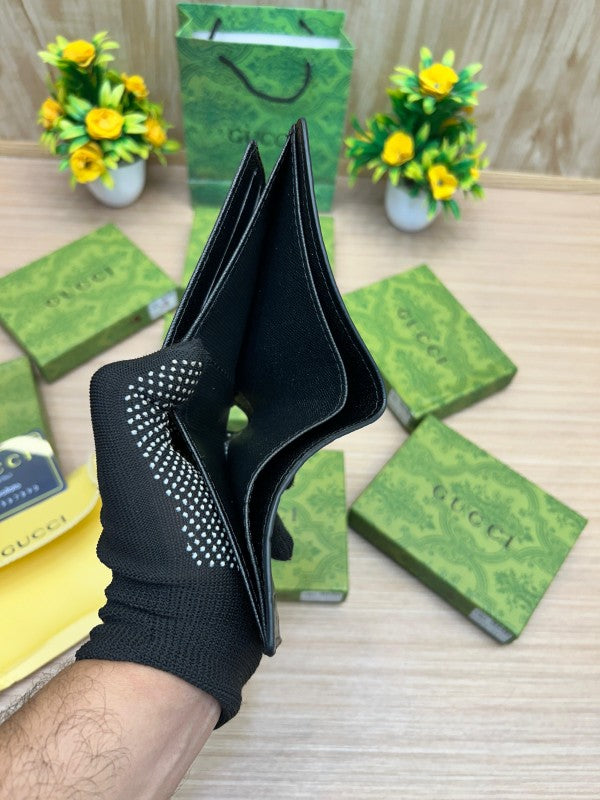 Sleek sophistication defines the Gucci GG Black Embossed Leather Wallet, a contemporary classic for the modern gentleman. Crafted in premium black leather with Gucci’s iconic interlocking GG logo embossed throughout, this wallet offers a bold yet refined statement of luxury.