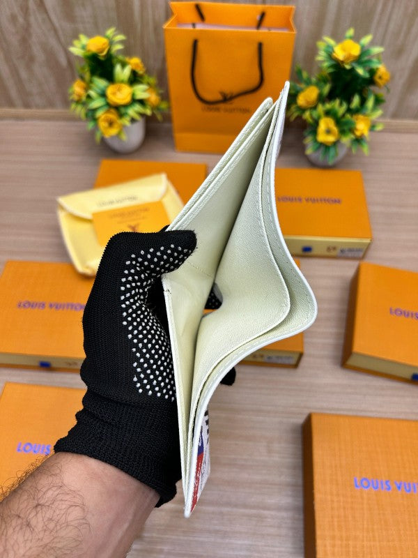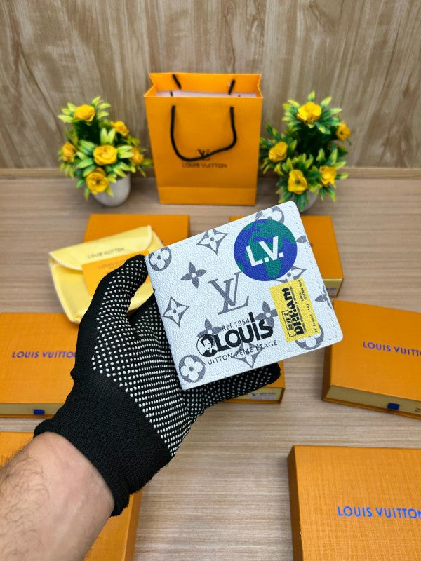 Louis Vuitton Monogram Printed Bi-Fold Wallet – “LV Globe” Edition (White Canvas)